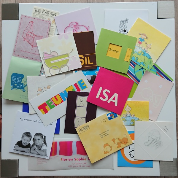 Hieronder geboortekaartjes, zet ze in de juiste volgorde. Van eerst geborene tot laatst geborene.