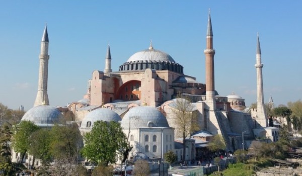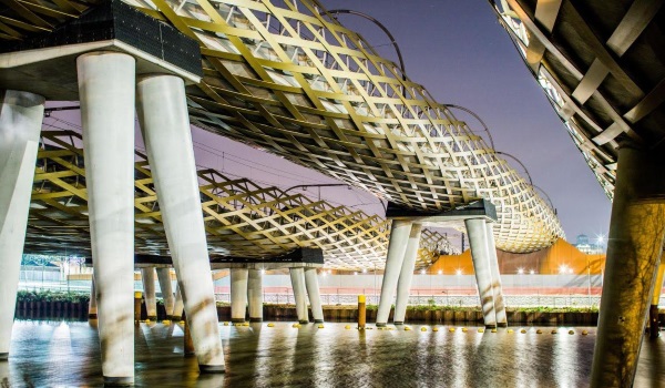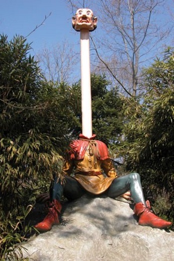 Een 15 meter hoge en bijna 100 meter lange trap met vijf figuren die elk een periode in de geschiedenis vertegenwoordigen.
